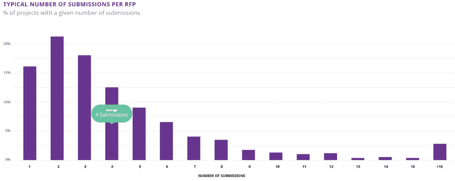 The data we’ve collected finds that 33% of suppliers who register to view project details go on to submit to the RFP opportunity.