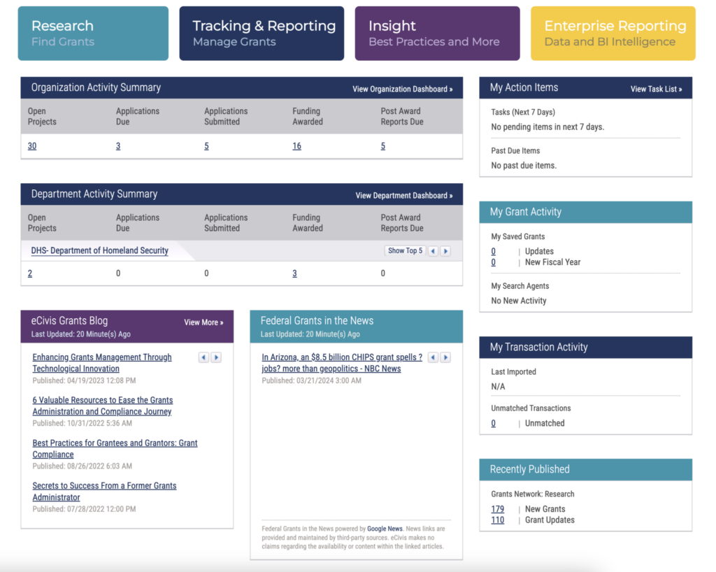 Track progress using real-time reports on application win rate, grants pursued or not pursued, and more to enhance visibility and enable a more strategic approach to finding grants.