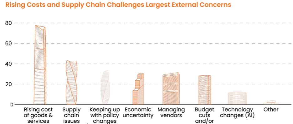 Survey results from our 2024 State of Public Procurement report indicate that the rising cost of goods and services is the largest external concern for public procurement teams.