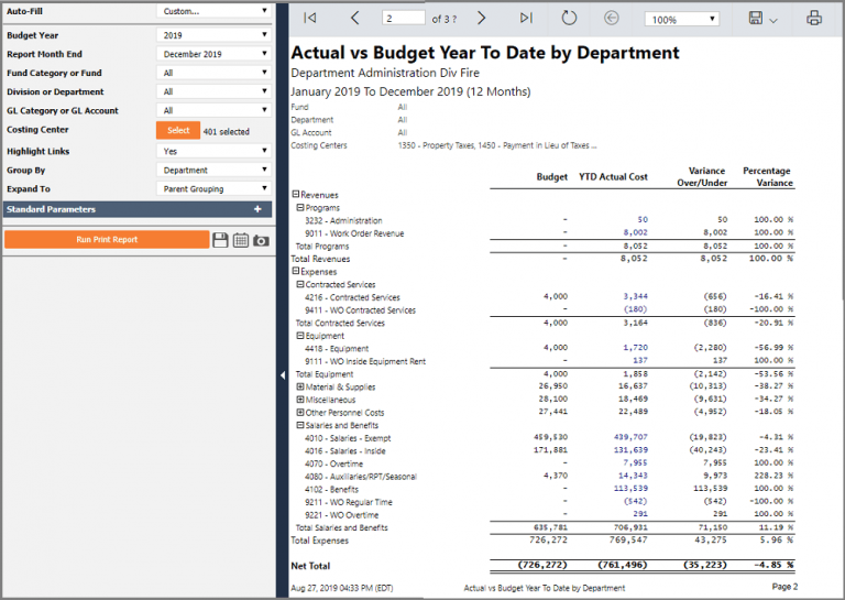 A Questica Budget Print Report Example