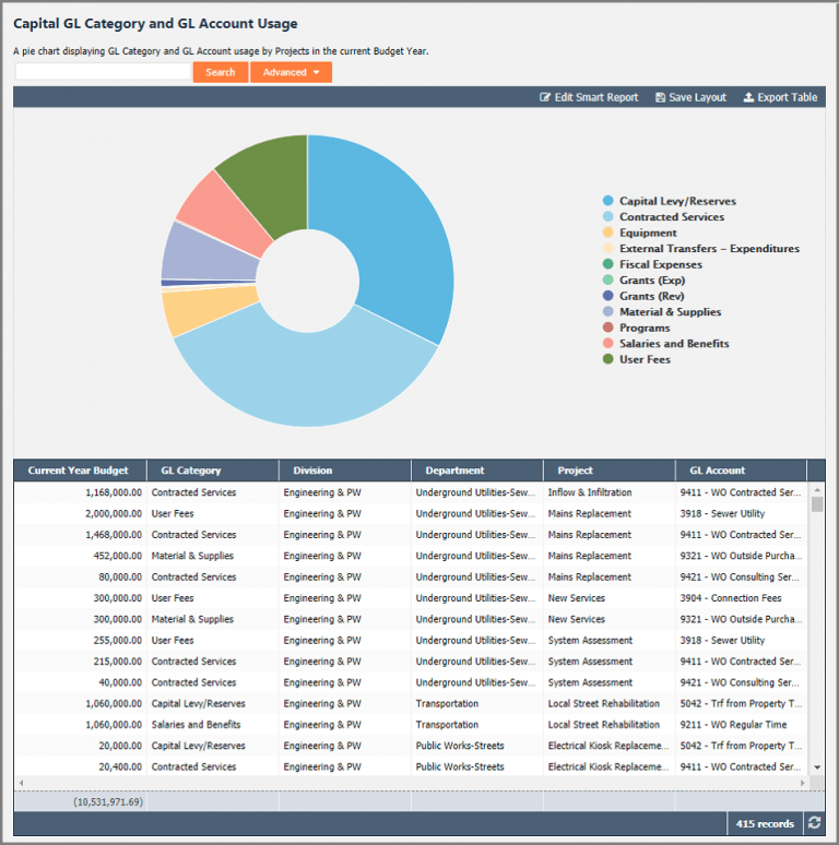 A Questica Budget Smart Report Example