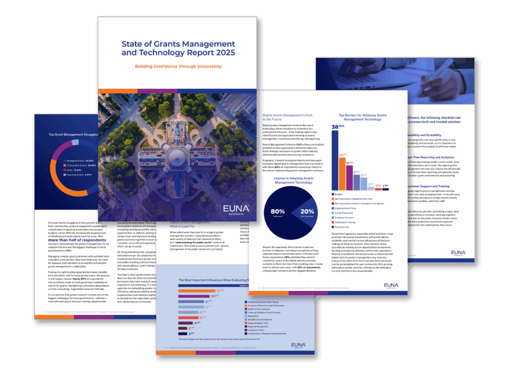 Euna Solutions conducted a survey in January 2025 that garnered responses from over 200 public sector grants management professionals. Results have been combined into the 2025 State of Grants Management & Technology Report. The report highlights an urgent need for modernization amid resource constraints. Key findings include: